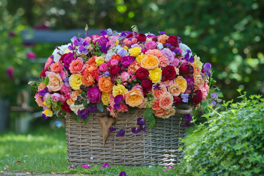 - Beetrose, Korb, Rose 'Baby Schneewittchen', Rose 'Coral Lions-Rose', Rose 'Enjoy', Rose 'Für Elise', Rose 'Impala', Rose 'Mango', Rose 'Meteor', Rose 'Phoenix', Rose 'Poetry', Rose 'Sunmaid', Rose 'Till Eulenspiegel', Rose 'Xenia'