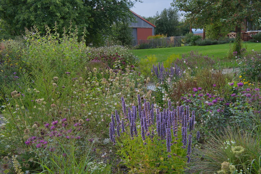 - Agastache rugosa 'Black Adder', Daucus carota, Gaura lindheimerii, Kiesgarten, Monarda, Präriebeet, Verbena bonariensis, Verbena hastata