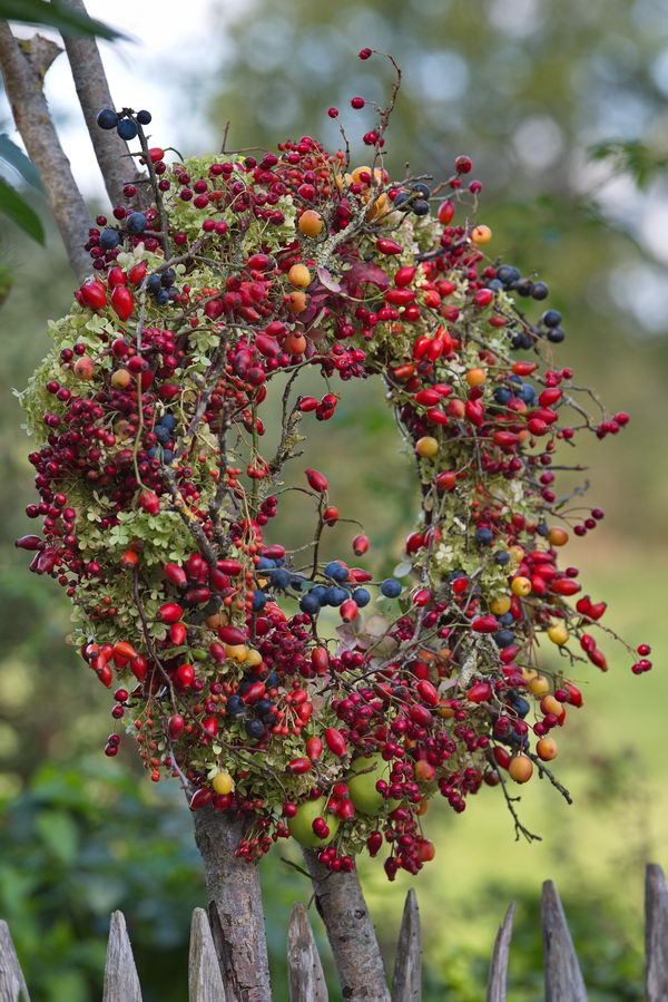 - Beeren, DIY, Hagebutten, Herbst, Kranz binden, Zierapfel, Weißdorn, Hortensie