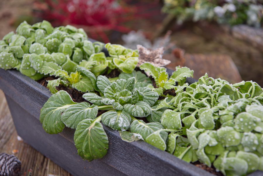 Asiasalat, Gemüse, Kübel, Raureif, Postelein, Winterportulak