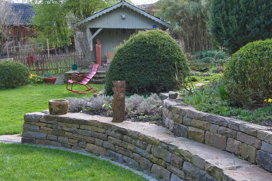 - Bergische Grauwacke, Hang, Mauer, Schaukelstuhl, Trockenmauer