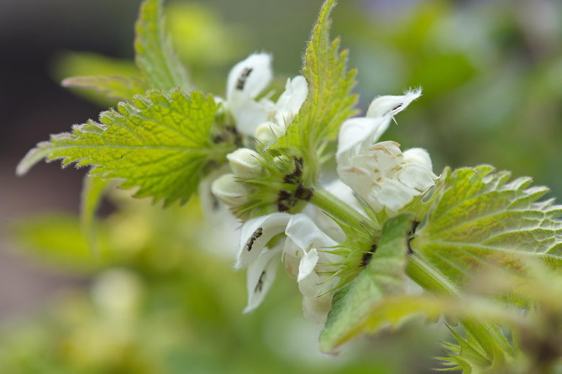 - Ackerhummel, Bombus pascuorum, Bärlauch, Große Sternmiere, Insektengarten, Kübel, Lamium album, Lamium galeobdolon, Lungenkraut, Rote Lichtnelke, Stellaria holostea, Wildstauden, gelbe Taubnessel, weiße Taubnessel, Insekt