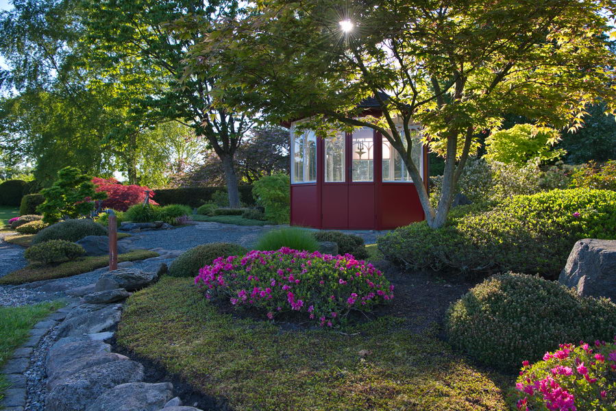 - Acer palmatum 'Osakazuki', Bodendecker, Cotula potentillina, Fiederpolster, Japangarten, Rhododendron, asia, Rhododendron obtusum
