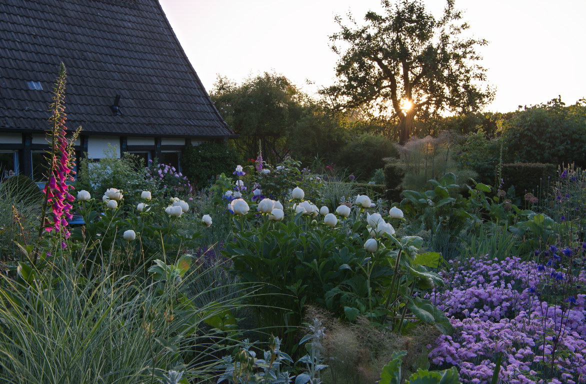 - Dianthus, Digitalis purpurea, Miscanthus 'Morning Light', Paeonia lactiflora 'Jan van Leeuwen'