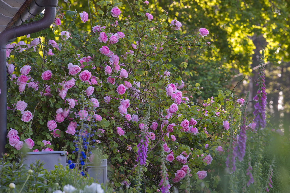 - Digitalis, Strauchrose, Rose 'Constance Spry'