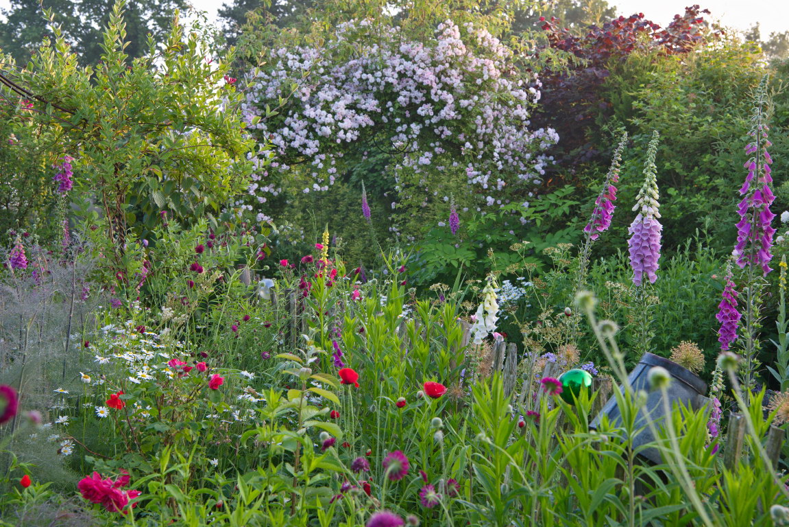 - Digitalis purpurea, Knautia macedonica, Leucanthemum maximum, Margerite, Rose 'Paul's Himalayan Musk', Papaver rhoeas