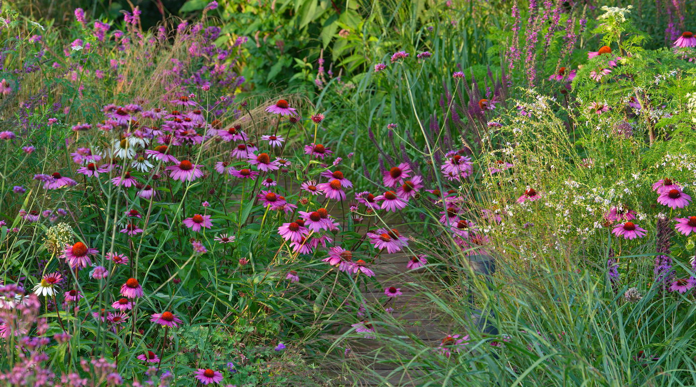 - Echinacea purpurea 'Magnus', Lythrum, Verbena bonariensis