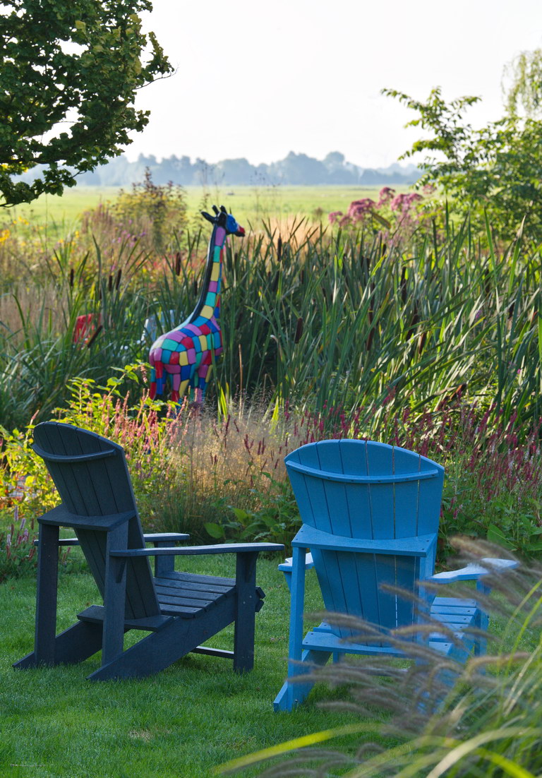 - Adirondack Chair, Giraffe, Gräser, Sitzplatz, Skulptur