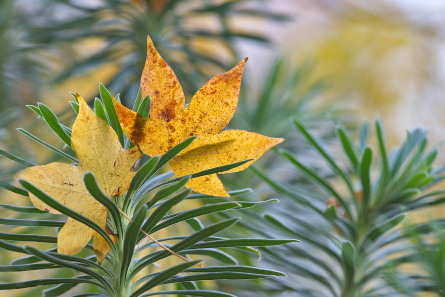 - Acer, Euphorbia characias ssp. wulfenii, Herbstlaub