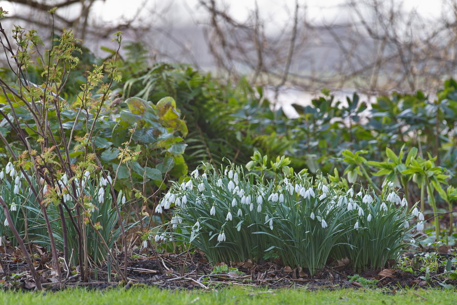- Fiederspiere, Galanthus, Helleborus, Sorbaria sorbifolia