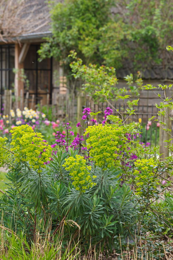 Euphorbia characias ssp. characias 'Black Pearl', Lunaria