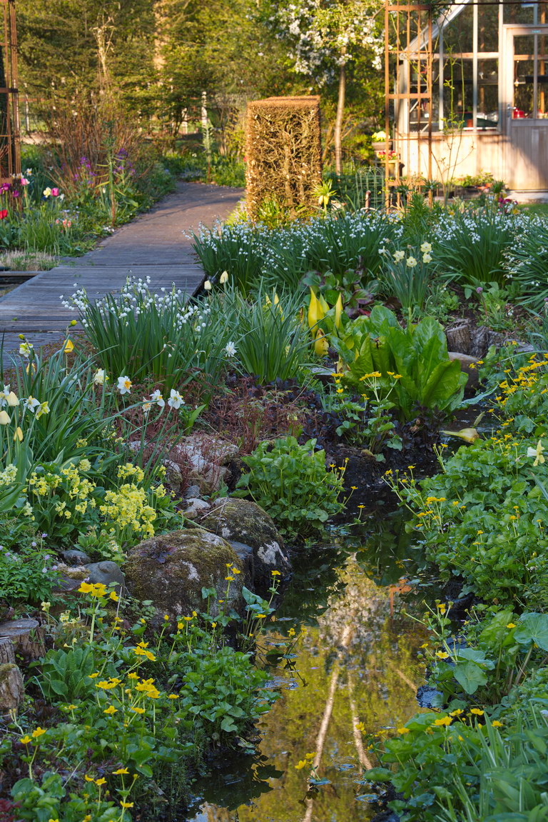 - Bach, Caltha palustris, Leucojum aestivum, Lysichiton americanus, Narzissen, Primula veris, Sumpfdotterblume