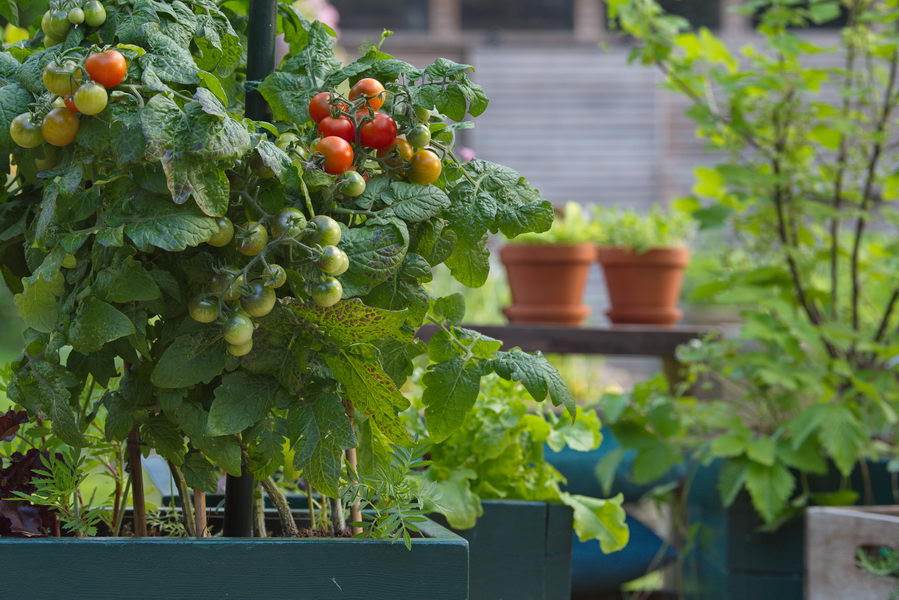 - Gemüse, Johannisbeere, Kübel, Tomate, Walderdbeere, Salat