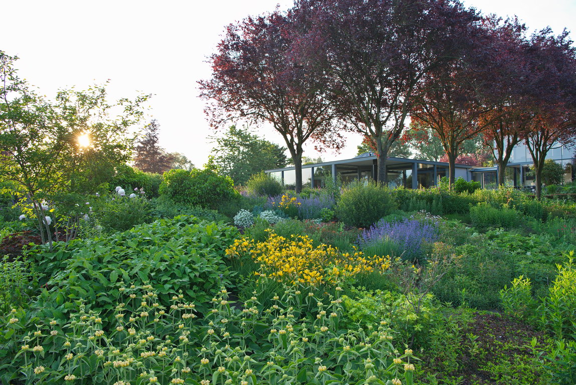 - Blutpflaume, Hemerocallis, Nepeta, Prunus cerasifera 'Nigra'