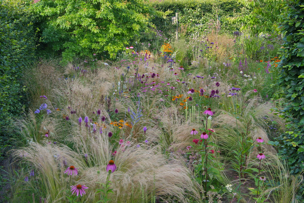 - Allium sphaerocephalon, Echinacea purpurea, Helenium, Liatris spicata, Nasella tenuissima, Stipa tenuissima