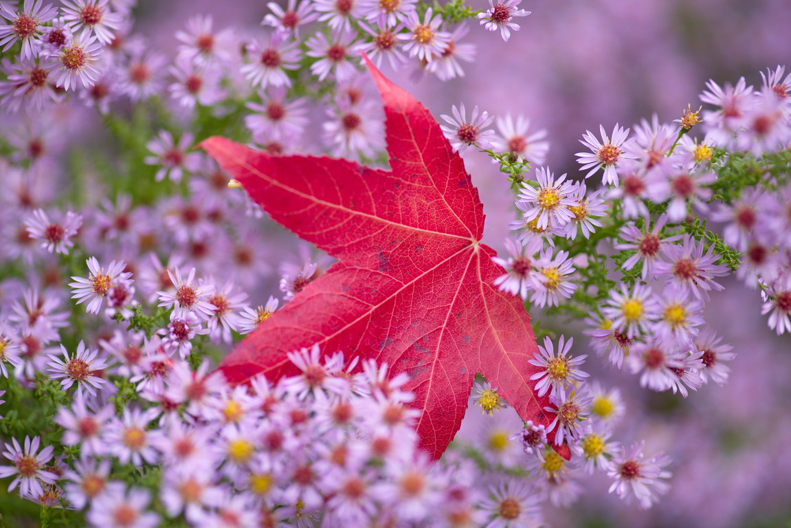 - Aster vimineus 'Lovely', Hebstaster, Liquidambar