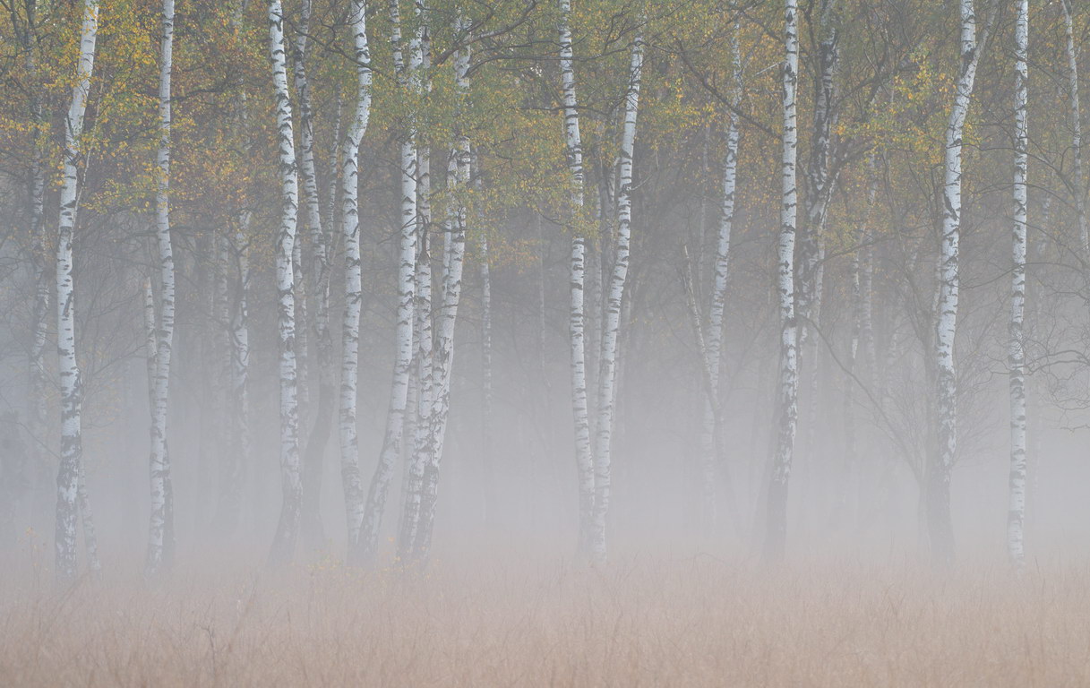Birken im Nebel