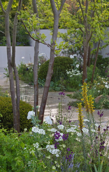 - Asphodeline lutea, Digitalis, Gleditsia triacanthos 'Sunburst', Orlaya grandiflora, Pittosporum tobira, Sisyrinchium striatum, Verbascum phoeniceum 'Violetta'