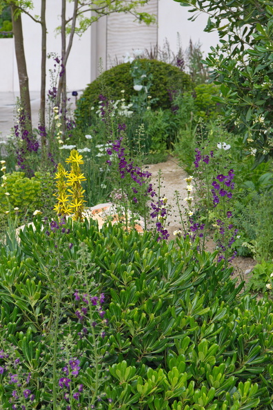 - Asphodeline lutea, Digitalis, Gleditsia triacanthos 'Sunburst', Orlaya grandiflora, Pittosporum tobira, Sisyrinchium striatum, Verbascum phoeniceum 'Violetta'