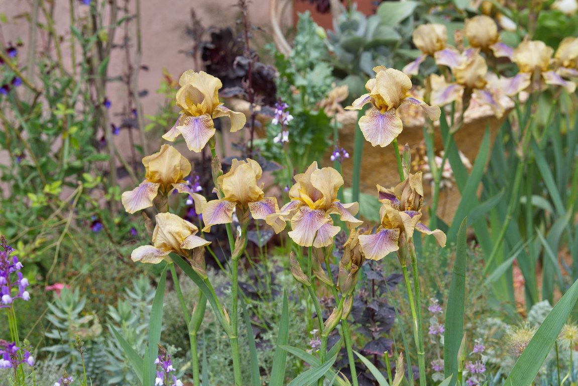 - Aeonium arboreum 'Zwartkop', Iris 'Benton Olive'
