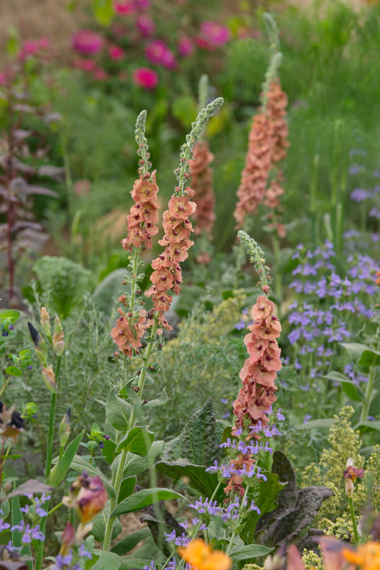 - Verbascum 'Helen Johnson', Rosa gallica officinalis