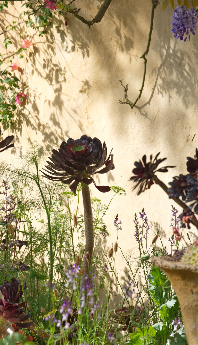 - Aeonium arboreum 'Zwartkop', Mauer, Terracotta