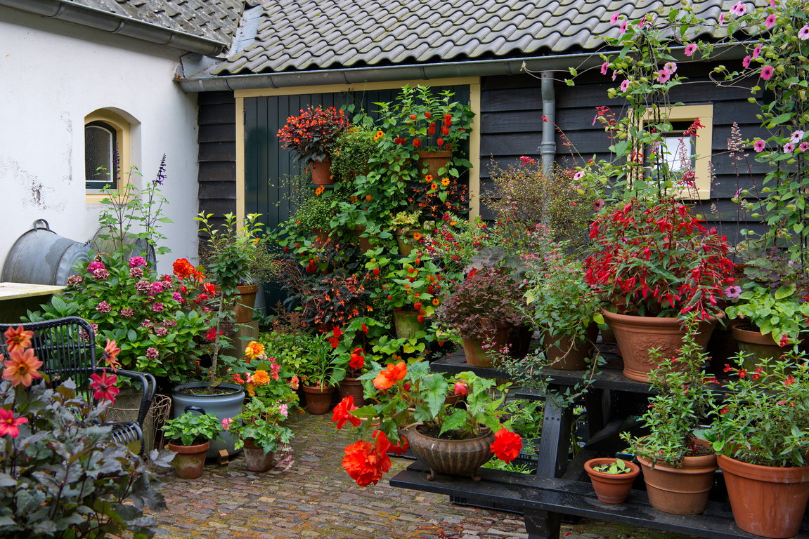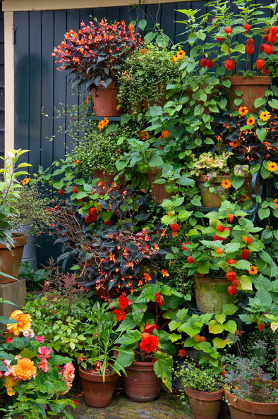 - 1-jährige, Töpfe, orange, Physalis alkekengi var. franchetii, Begonia, Thunbergia