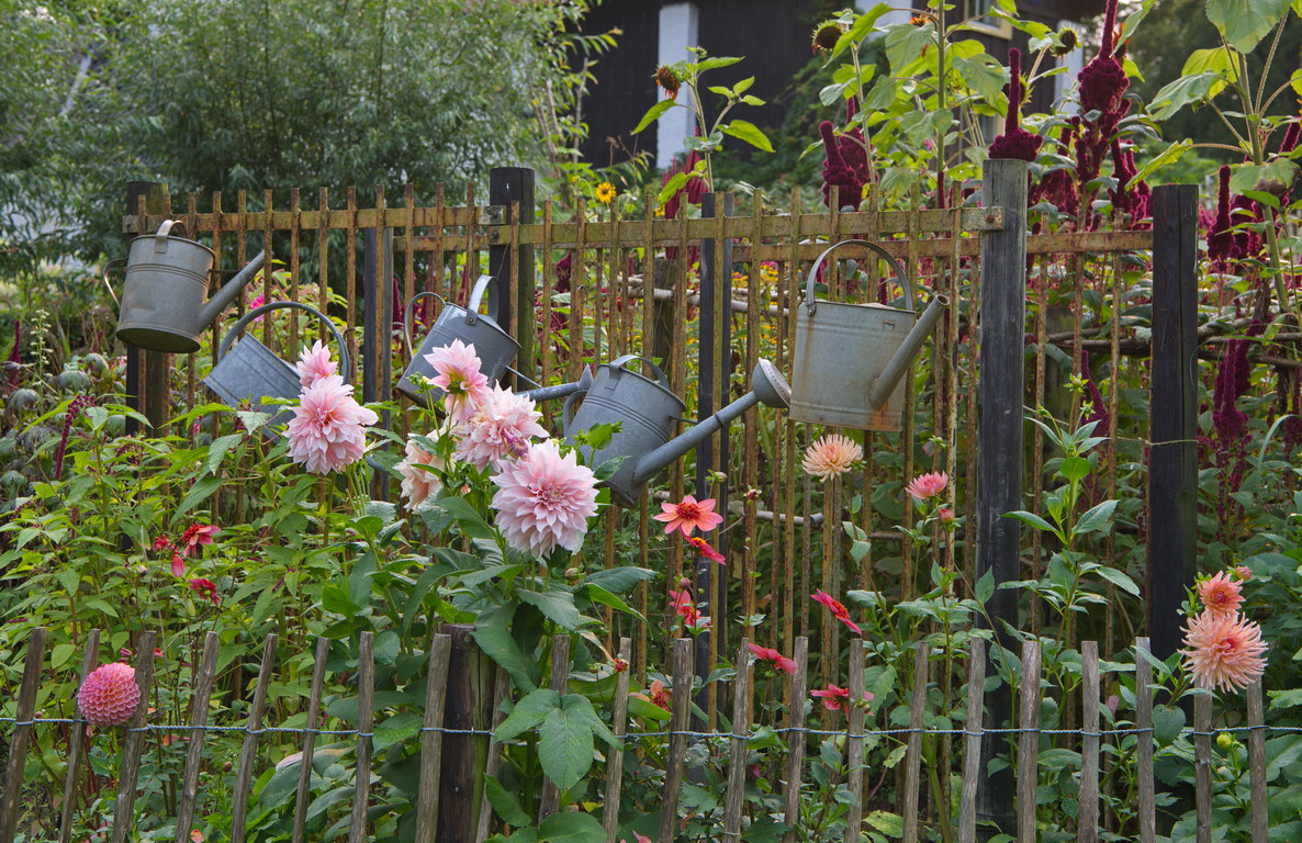 Dahlia, Gießkanne, Schnittblumen, Bauerngarten