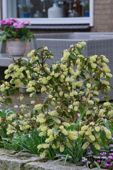 - Cyclame coum, Daphne, Galanthus, Lorbeerblättrige Johannisbeere, Ribes laurifolium