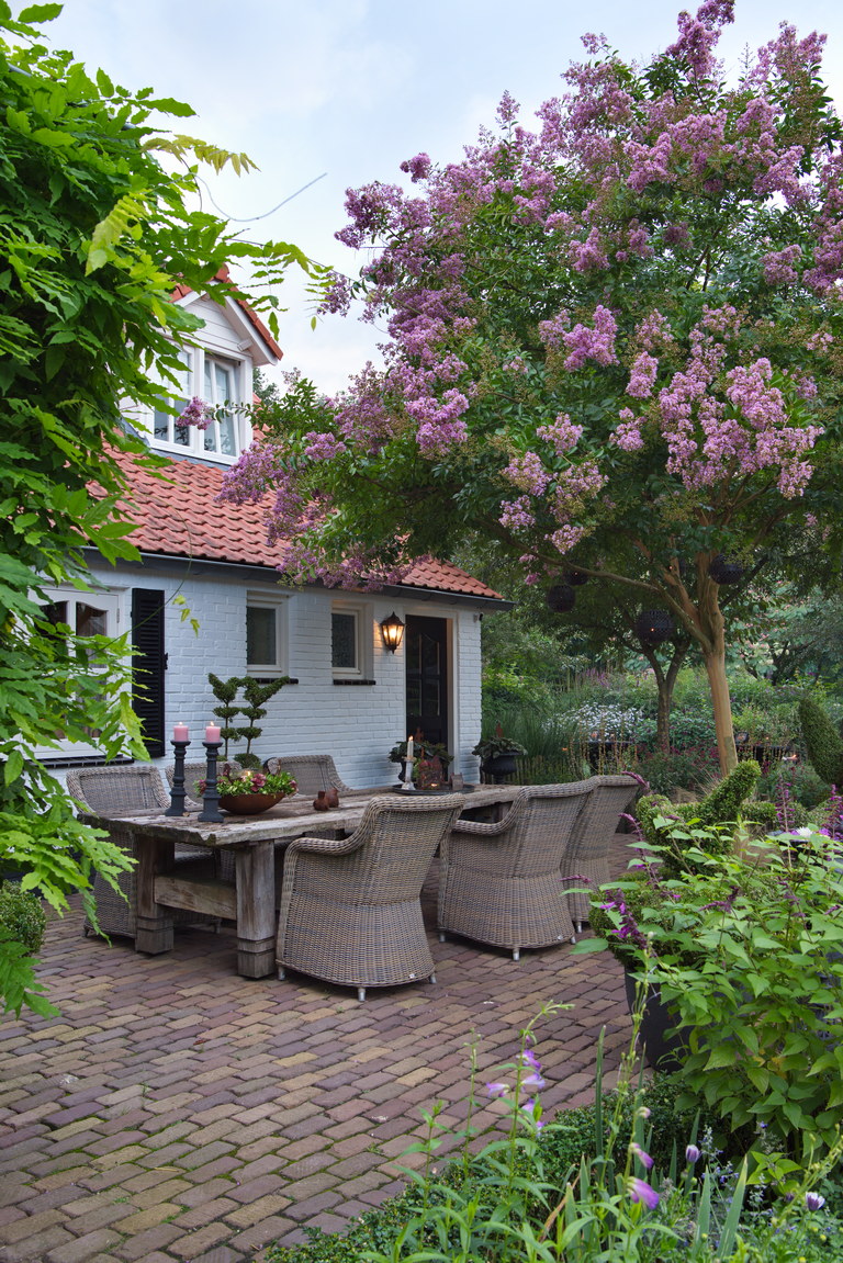- Klinker, Lagerstroemia indica, Salvia 'Amistad', Sitzplatz, Terrasse