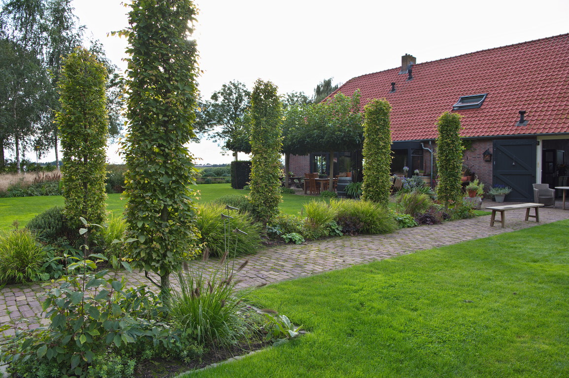 - Carpinus betulus 'Fastigiata', Hakonechloa macra, Säule, Säulenhainbuche, Weg