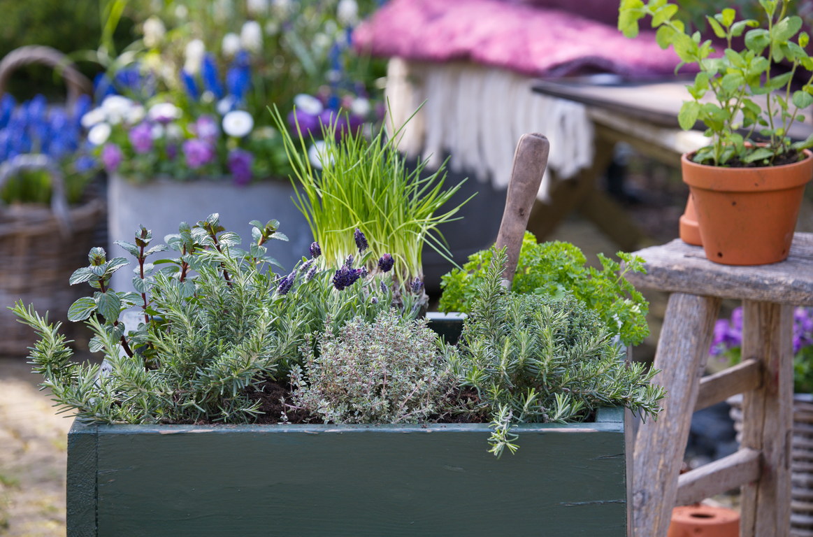 - Kräuter, Kräuterbeet, Kübel bepflanzen, Minze, Petersilie, Rosmarin, Schnittlauch, Thymus