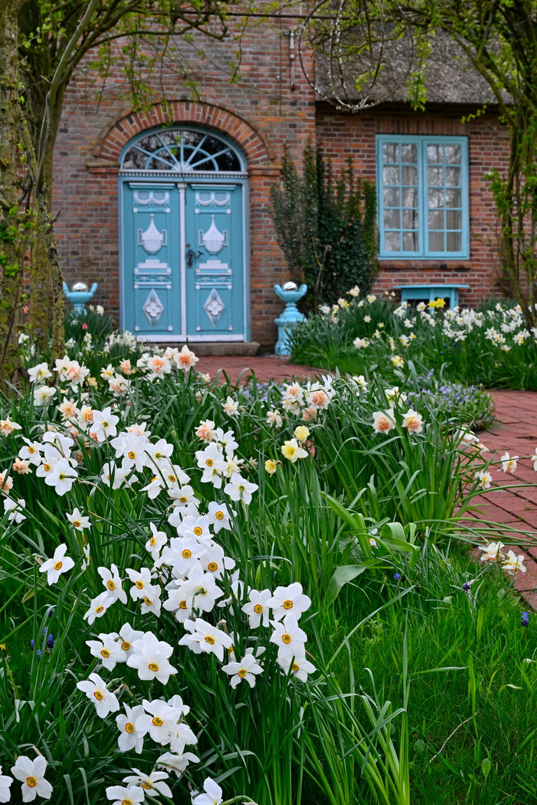 Eingang, Narcissus, Narzissen, Vorgarten, Bank