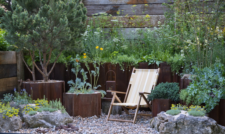 - Acer, Astilboides tabularis, Containergarten, Digitalis, Farne, Hosta, Kübel, Rodgersia