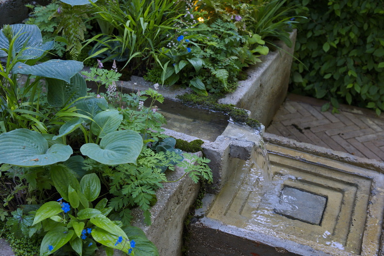 - Brunnera macrophylla, Hosta, kleiner Garten, recycling, Schatten, Tiarella 'Spring Symphony', Wasserbecken