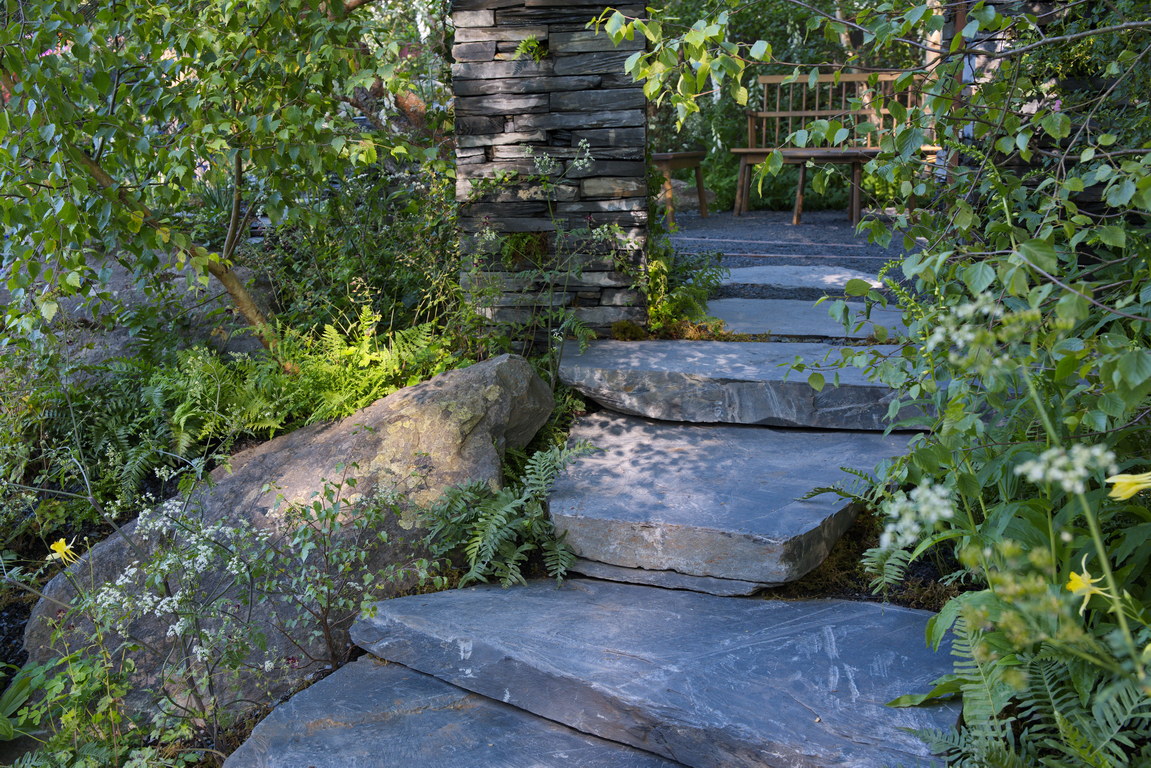- Anthriscus sylvestris, Mauer, Polypodium vulgare, Schiefer, Trittstein
