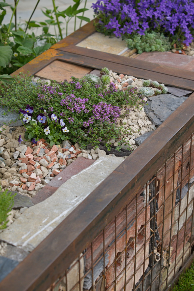 - Campanula, Gabione, Insektenhotel, Thymus serpyllum, Trockenmauer, Unterschlupf