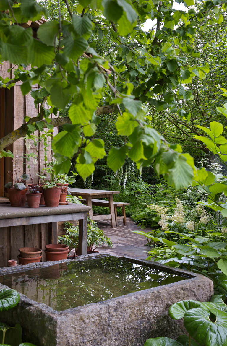 - Trog, Wasser, Rodgersia aesculifolia