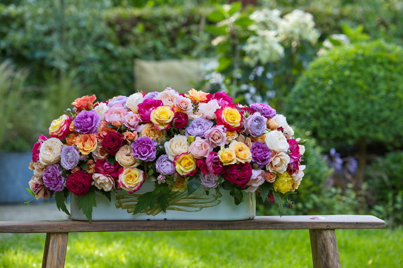 - Glas, Strauß, Vase, Rosen. mix, bunt