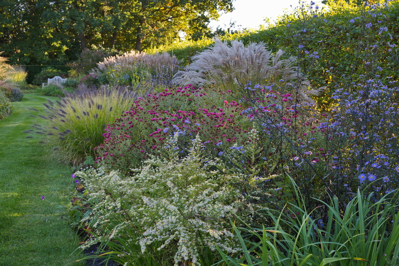 - Aster ericoides 'Golden Spray', Aster laevis 'Calliope', Aster novae-angliae 'Alma Pötschke', Miscanthus, Pennisetum
