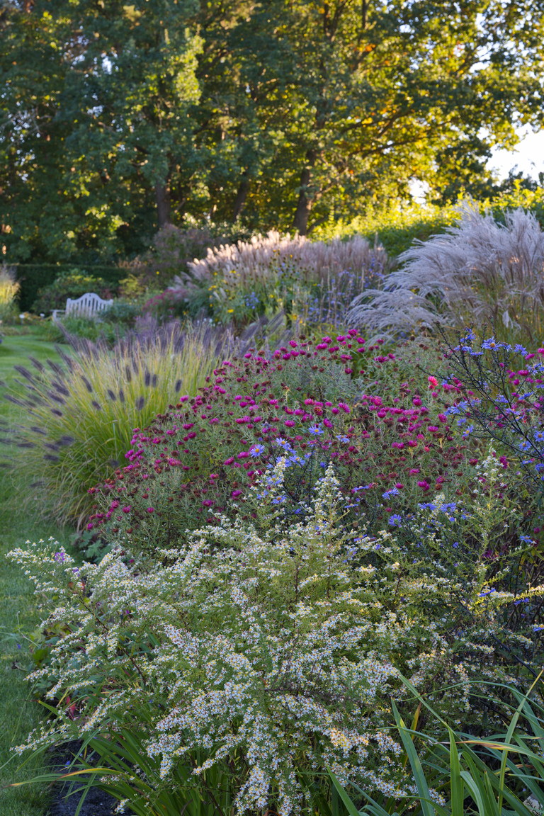 - Aster ericoides 'Golden Spray', Aster laevis 'Calliope', Aster novae-angliae 'Alma Pötschke', Miscanthus, Pennisetum