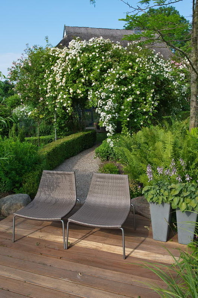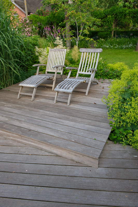 - Garten Fenna Graf, Holzdeck, Liegestühle, Paar, Terrasse