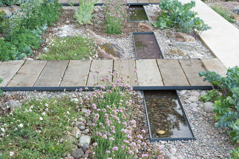 - Kies, modern, Rinne, Steg, Wasserbecken, Chelsea Flower Show 2011