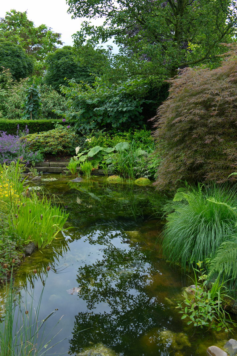 - Darmera peltata, Iris, Mimulus, Peltiphyllum peltata, Schildblatt, Teich, Acer