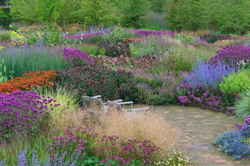 - Astrantia, Deschampsia cespitosa, Monarda "Scorpion", Nepeta, Perovskia "Blue Spire", Perovskia atriplicifolia 'Blue Spire', The walled Garden at Scampston