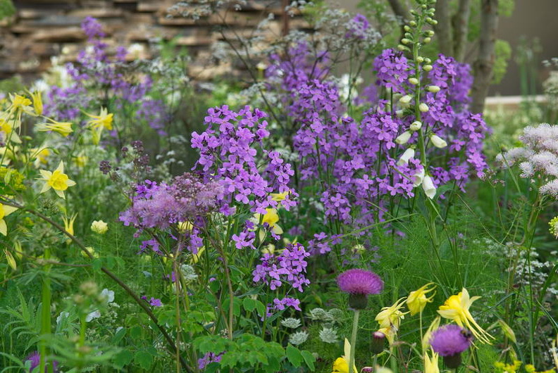 - Aquilegia chrysantha "Yellow Queen", Chelsea Flower Show, Cirsium atropurpureum, Cirsium heterophyllum, Hesperis matronalis "Sweet Rocket", Thalictrum