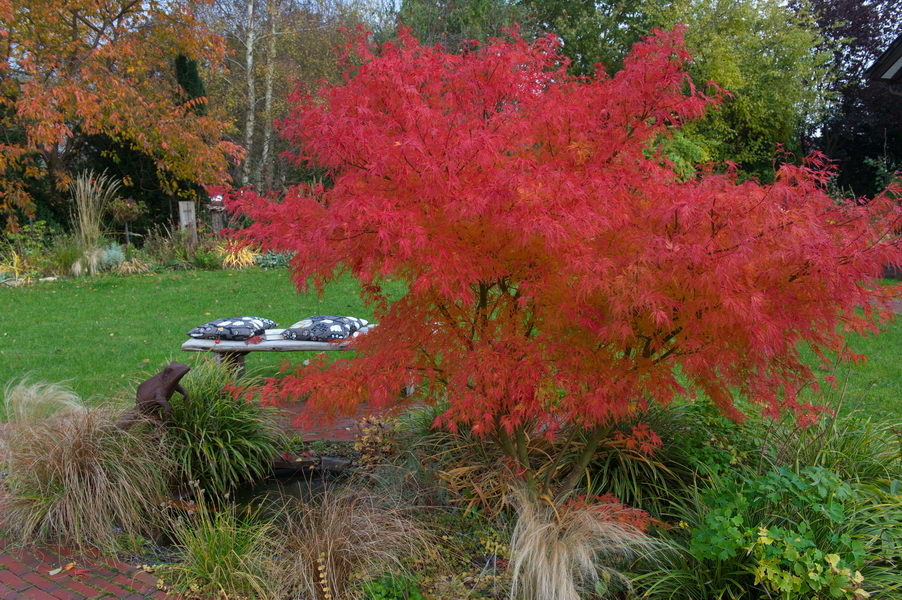 - Acer, Bank, Fächerahorn, Herbstlaub, Schlitzahorn