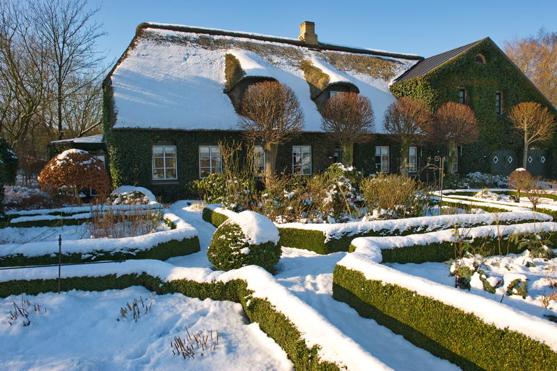 Haus, Hecken, Reetdach, Schnee, Garten Christine Eichner