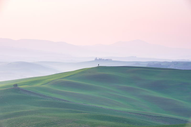 Hügellandschaft, Nebel, Toskana, Val D'Orcia