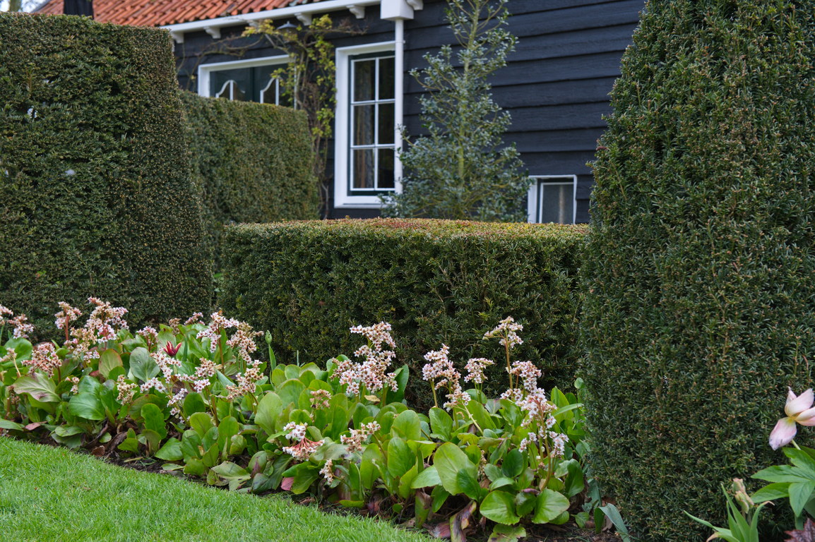 - Bergenia, Hecke, Taxus